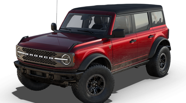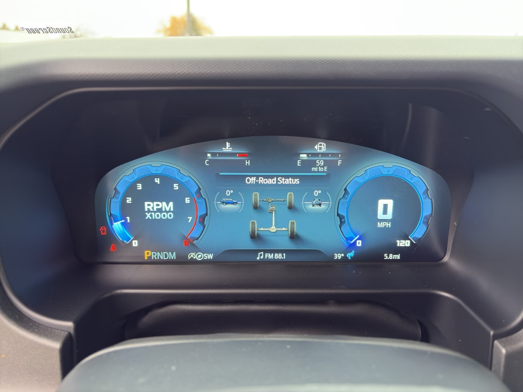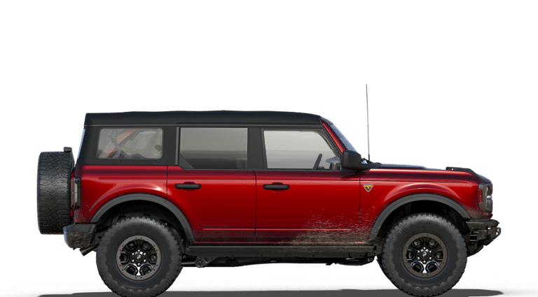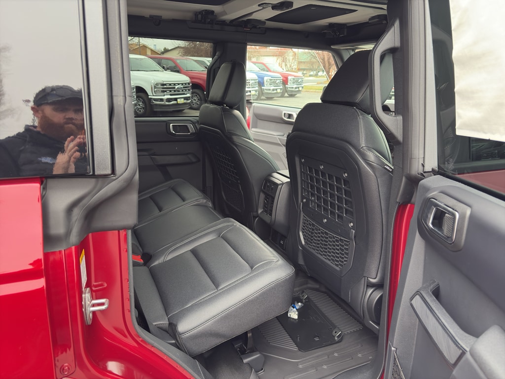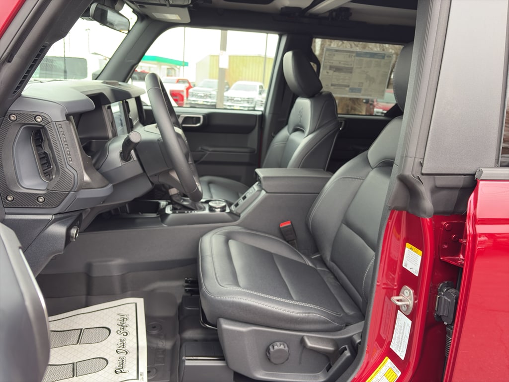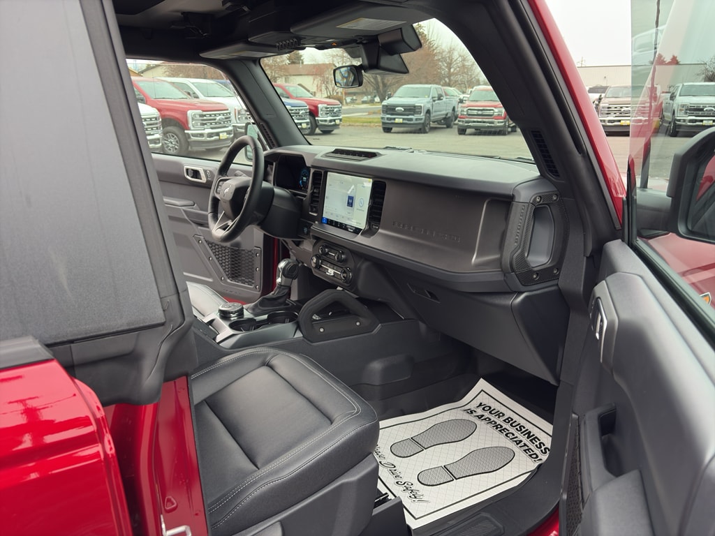 Equipment Group 332A Mid Package: Rear Parking Sensors; Power Outlet - Back Side of Center Floor Console; Dual Smart Charging USB Ports; Front Row Heated Seats; Driver and Front Passenger Illuminated Sliding Visor Vanity Mirrors; AM/FM Stereo; Marine Grade Vinyl Heated Bucket Seats; Dual-Zone Electronic Automatic Temperature Control; Connected Navigation; Ambient Footwell Lighting; Remote Start System; 2-Door Intelligent Access with Lock/unlock. Ford Co-Pilot360: Auto High-Beam Headlamps; Rear View Camera; Pre-Collision Assist with Automatic Emergency Braking; Blind Spot Information System (BLIS); Lane-Keeping System. Sasquatch Package: High Clearance Fender Flares; High Clearance Suspension; 4.7 Final Drive Ratio; LT315/70R17 Rugged-Terrain Tires; Position-Sensitive Bilstein Shock Absorbers. Shadow Black Painted Hard Top. 17 Black High Gloss-Painted Aluminum Wheels. Ford Performance Heavy-Duty Modular Front Bumper. Hard Top Sound Deadening Headliner. Ruby Red Met Tinted CC. Door Storage Bags. Front and Rear Floor Liners Without Carpet Floor Mats. **Equipment listed is based on original vehicle build and subject to change. Please confirm the accuracy of the included equipment by calling the dealer prior to purchase.**