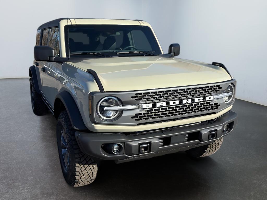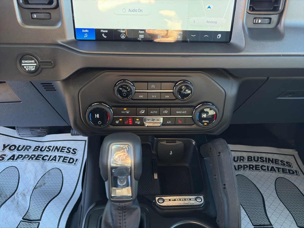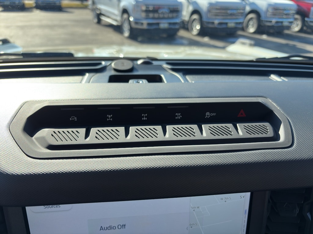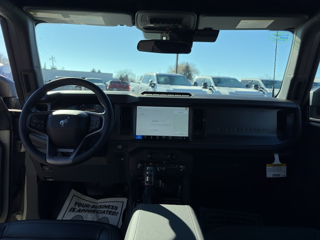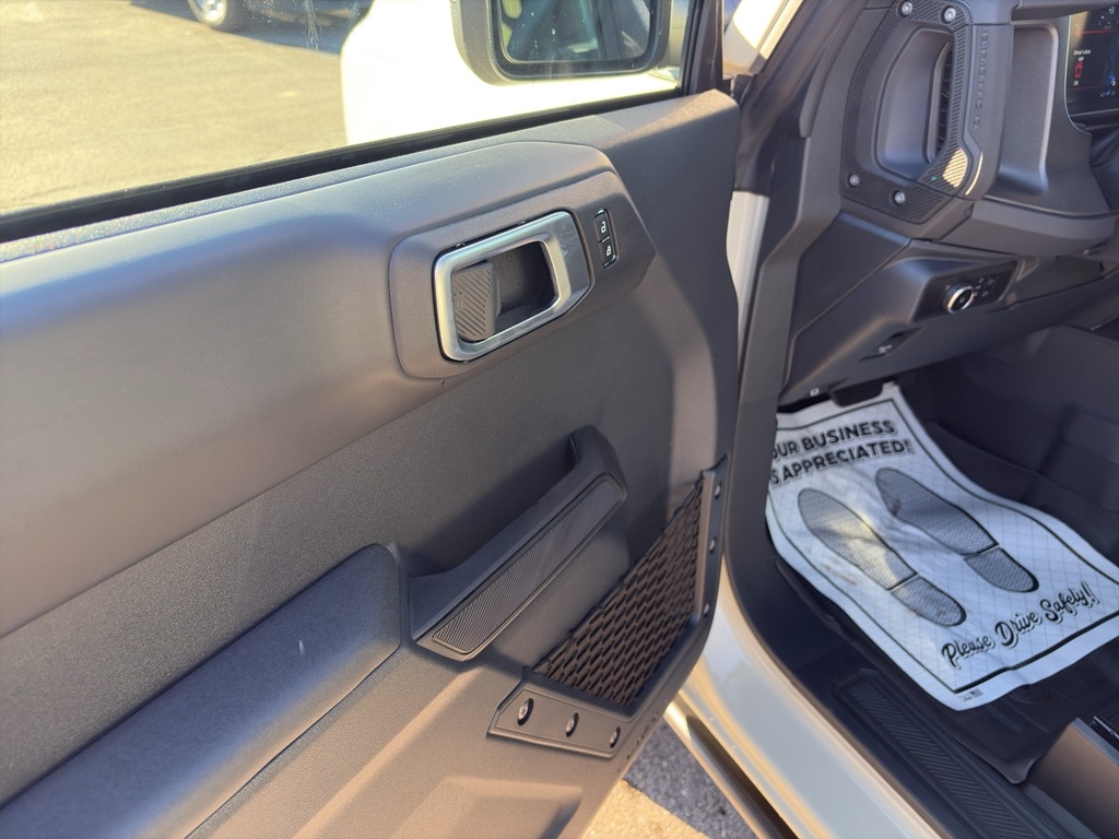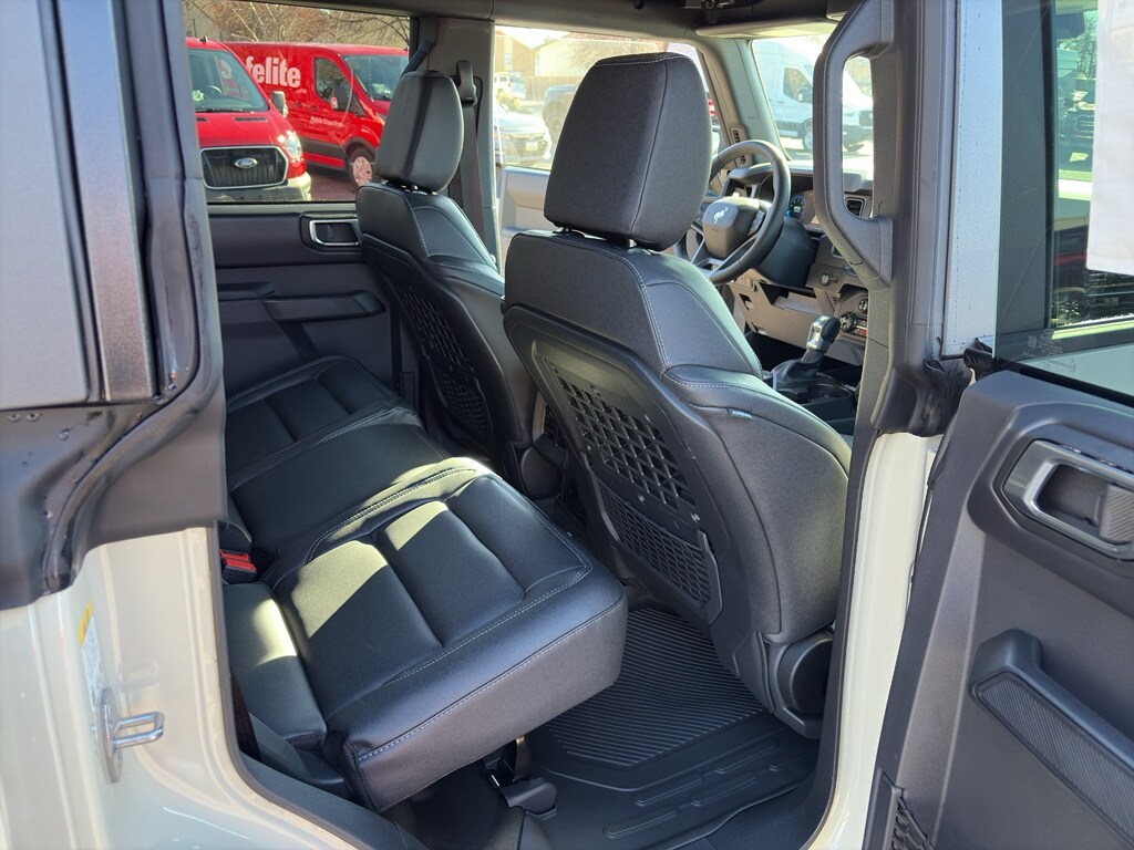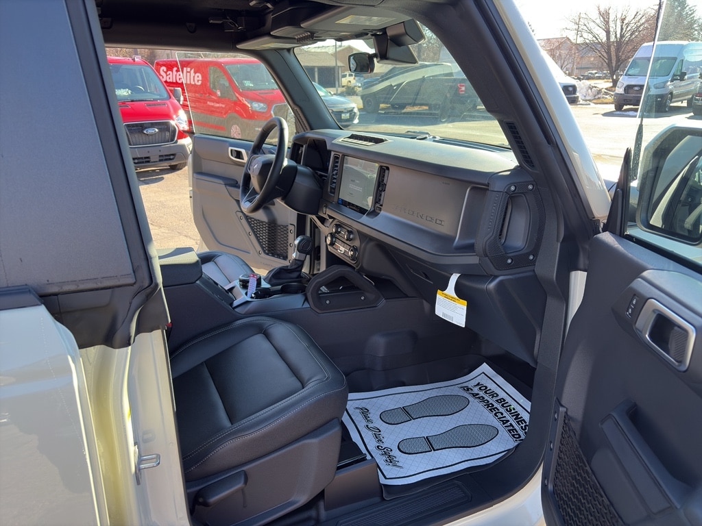 Equipment Group 332A Mid Package: 17 Carbonized Gray-Painted Aluminum Wheel; Rear Parking Sensors; Power Outlet - Back Side of Center Floor Console; Dual Smart Charging USB Ports; Front Row Heated Seats; Driver and Front Passenger Illuminated Sliding Visor Vanity Mirrors; AM/FM Stereo; Marine Grade Vinyl Heated Bucket Seats; Dual-Zone Electronic Automatic Temperature Control; Connected Navigation; Ambient Footwell Lighting; Remote Start System; 2-Door Intelligent Access with Lock/unlock. Ford Co-Pilot360: Auto High-Beam Headlamps; Rear View Camera; Pre-Collision Assist with Automatic Emergency Braking; Blind Spot Information System (BLIS); Lane-Keeping System. Carbonized Gray Molded-In-color Hard Top. LT285/70R17 Mud-Terrain Tires. Hard Top Sound Deadening Headliner. Door Storage Bags. Desert Sand. Front and Rear Floor Liners Without Carpet Floor Mats. **Equipment listed is based on original vehicle build and subject to change. Please confirm the accuracy of the included equipment by calling the dealer prior to purchase.**