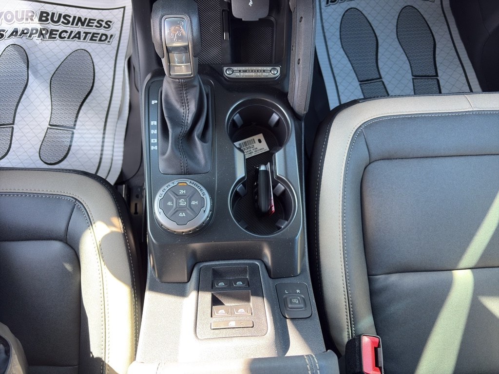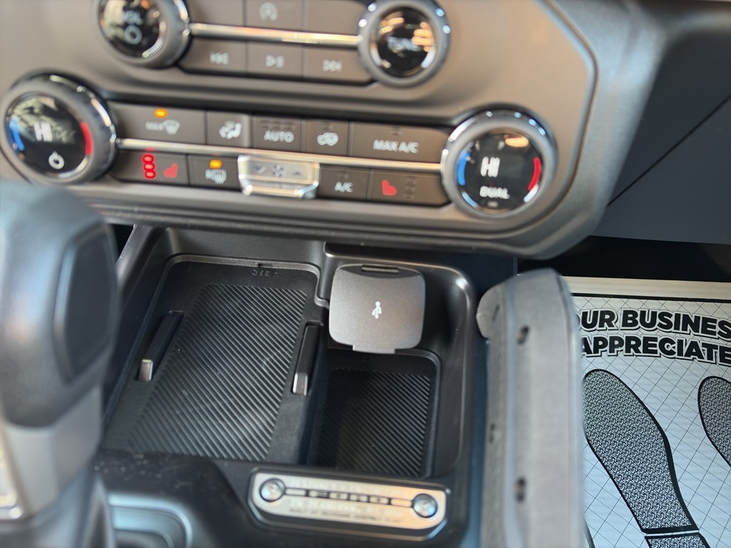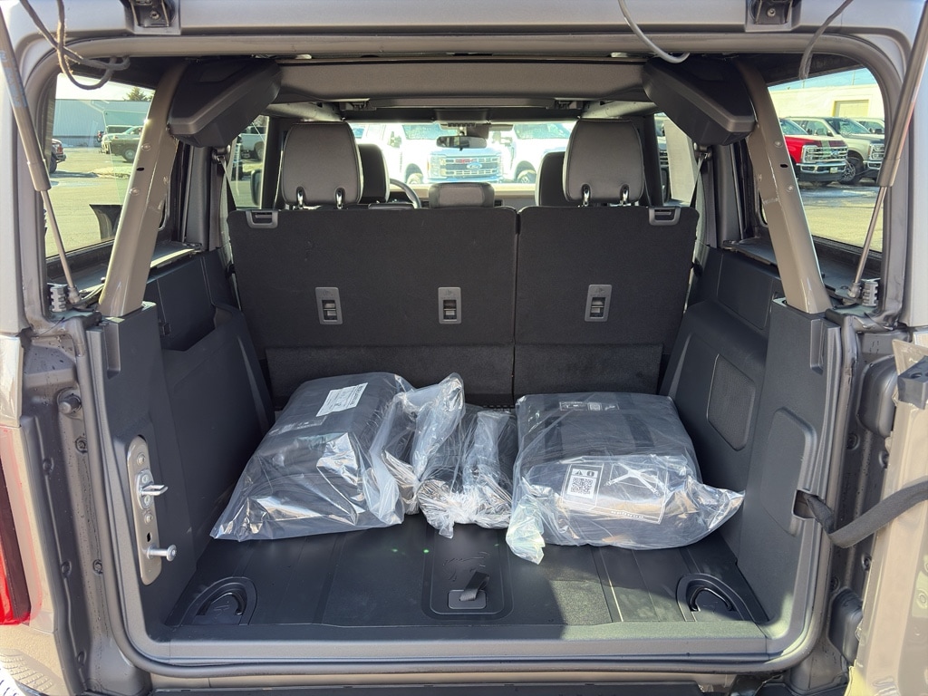 Equipment Group 222A Mid Package: 17 Carbonized Gray-Painted Aluminum Wheel; Rear Parking Sensors; Pro Power Onboard - 400W; Dual Smart Charging USB Ports; 2.3L EcoBoost I-4 Engine; Front Row Heated Seats; Driver and Front Passenger Illuminated Sliding Visor Vanity Mirrors; AM/FM Stereo; Dual-Zone Electronic Automatic Temperature Control; Connected Navigation; P255/75R17 A/T Tires; Ambient Footwell Lighting; Remote Start System; 2-Door Intelligent Access with Lock/unlock. Ford Co-Pilot360: Auto High-Beam Headlamps; Rear View Camera; Pre-Collision Assist with Automatic Emergency Braking; Blind Spot Information System (BLIS); Lane-Keeping System. Black Diamond Package: Rock Rails; Washout Capable Rubberized Flooring; Powder Coated Steel Front and Rear Bumpers; Full Vehicle Steel Bash Plates; Auxiliary Switches; LED Fog Lamps. Carbonized Gray Molded-In-color Hard Top. Marine Grade Vinyl Bucket Seats. Hard Top Sound Deadening Headliner. Marsh Gray. Front and Rear Floor Liners Without Carpet Floor Mats. Front Row Top Panels and Door Storage Bags. **Equipment listed is based on original vehicle build and subject to change. Please confirm the accuracy of the included equipment by calling the dealer prior to purchase.**