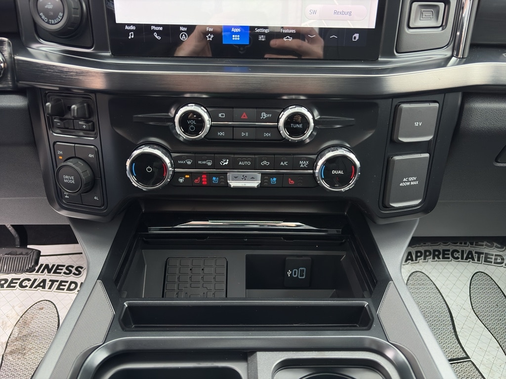 Lariat Premium Package: Pro Trailer Hitch Assist; Power-Sliding Rear-Window with Defrost; Platform Running Boards; Pro Trailer Backup Assist. Ford Co-Pilot 360 Assist 2.0: Pre-Collision Assist; Post-Collision Braking; BLIS with Cross-Traffic Alert; Lane-Keeping System; Front and Rear Parking Sensors; Automatic High Beam; Adaptive Cruise Control with Stop-And-Go. Chrome Package: Unique Chrome Mirror Caps; Chrome Door Handles; 6 Angular Bright Anodized Step Bars; Chrome Exhaust Tip. FX4 Off-Road Package: Transfer Case and Fuel Tank Skid Plates; Hill Descent Control; Off-Road Specifically Tuned Shock Absorbers; Unique FX4 Off-Road Box Decal. Lariat Ultimate Package: 4-Way Adjustable Headrests; Tailgate Step and Handle; Head-Up Display. Order Code 618A: 18 Bright Machined and Carbonized Gray Aluminum Wheels; Front ActiveX Trimmed 40/console/40 Seats; LT275/65Rx18E BSW A/S Tires; B&O Sound System by Bang and Olufsen. Twin Panel Power Moonroof. 5th Wheel/gooseneck Hitch Prep Package. 6 Angular Bright Anodized Step Bars. Power-Sliding Rear-Window with Defrost. SecuriCode Keyless Entry Keypad (driver's Side). Electronic-Locking with 3.55 Axle Ratio. Tailgate Step and Handle. Rapid-Heat Supplemental Cab Heater. Front and Rear Wheel Well Liners. Gooseneck Hitch Kit. All-Weather Floor Mats. First Aid Kit with Ford Logo. **Equipment listed is based on original vehicle build and subject to change. Please confirm the accuracy of the included equipment by calling the dealer prior to purchase.**