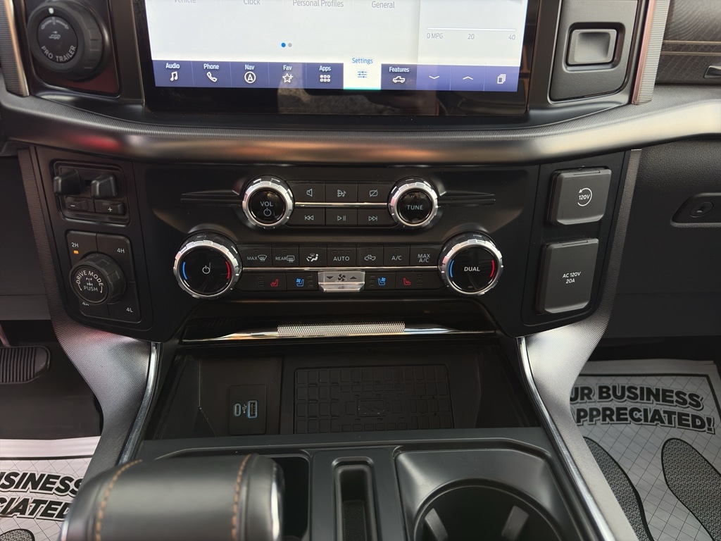 Start this vehicle from inside with remote start. The Ford F-150 has auto-adjust speed for safe following. This vehicle is a certified CARFAX 1-owner. Bluetooth technology is built into this 1/2 ton pickup, keeping your hands on the steering wheel and your focus on the road. An off-road package is equipped on this model. You'll never again be lost in a crowded city or a country region with the navigation system on the Ford F-150. This unit has a clean CARFAX vehicle history report. See what's behind you with the back up camera on the vehicle. This vehicle offers Apple CarPlay for seamless connectivity. The leather seats in this Ford F-150 are a must for buyers looking for comfort, durability, and style. The vehicle offers Android Auto for seamless smartphone integration. Set the temperature exactly where you are most comfortable in this 2023 Ford F-150 . The fan speed and temperature will automatically adjust to maintain your preferred zone climate.