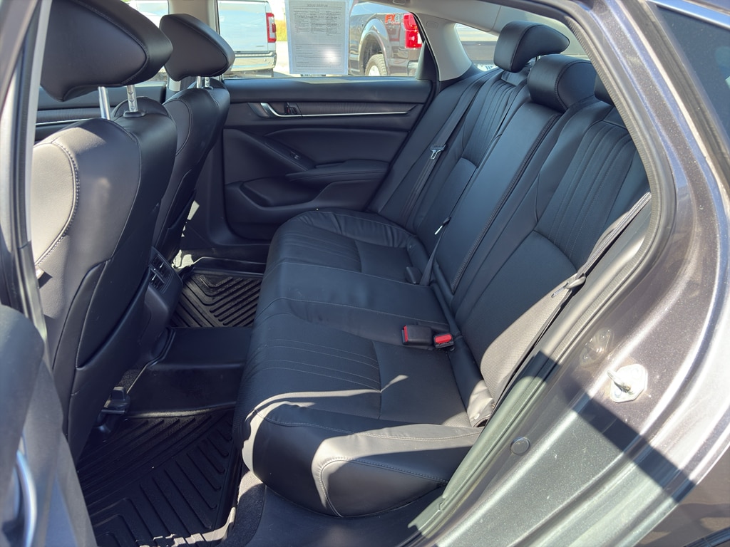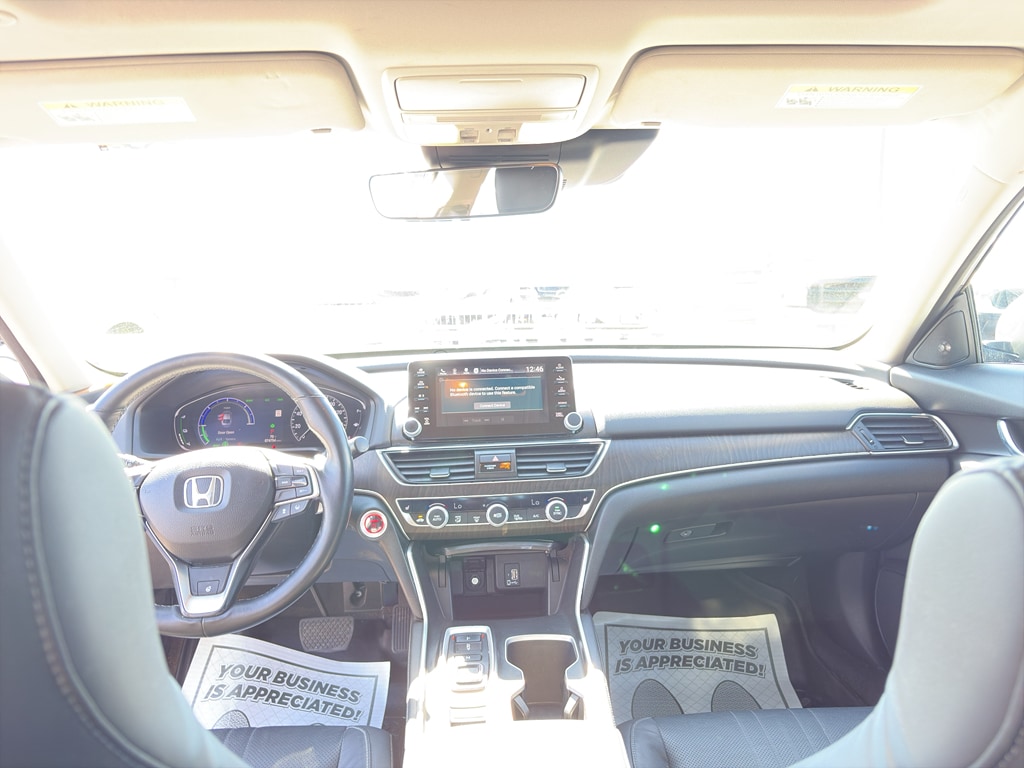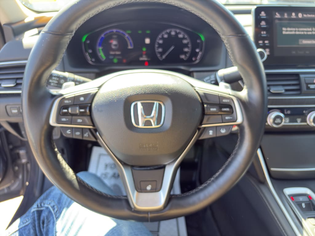 The leather seats in this vehicle are a must for buyers looking for comfort, durability, and style. See what's behind you with the back up camera on it. This unit offers Android Auto for seamless smartphone integration. This model has a clean CARFAX vehicle history report. Bluetooth technology is built into this unit, keeping your hands on the steering wheel and your focus on the road. It keeps you comfortable with Auto Climate. This vehicle is a certified CARFAX 1-owner. This Honda Accord Hybrid offers Apple CarPlay for seamless connectivity. Start the vehicle from inside with remote start. This mid-size car has auto-adjust speed for safe following. Front wheel drive on it gives you better traction and better fuel economy. The Honda Accord Hybrid projects refinement with a racy metallic gray exterior. This vehicle has a 4 Cyl, 2.0L high output engine. Maintaining a stable interior temperature in this Honda Accord Hybrid is easy with the climate control system.