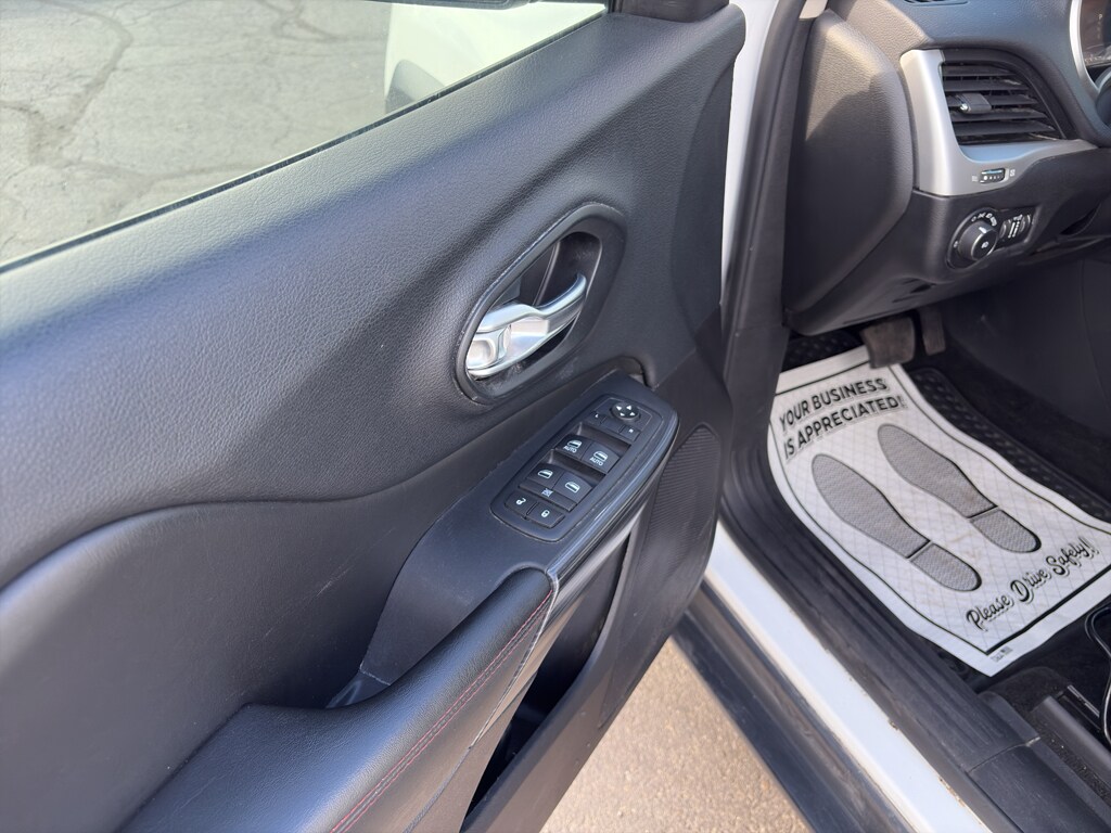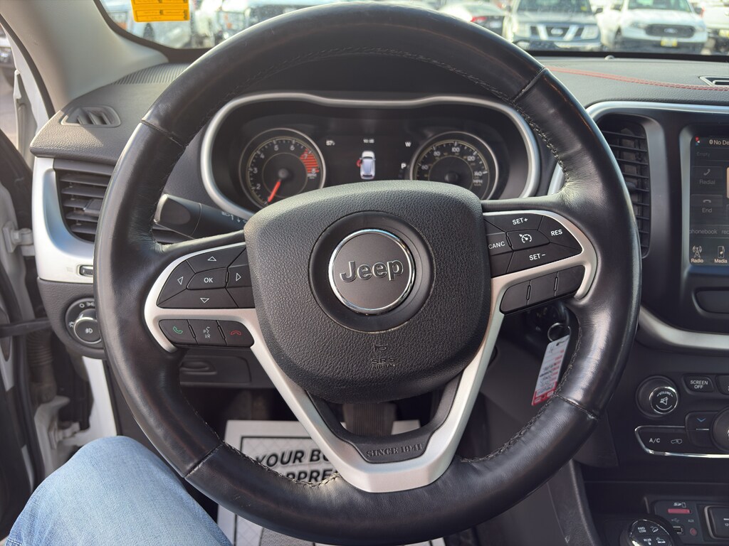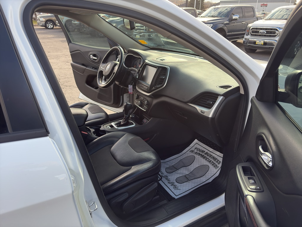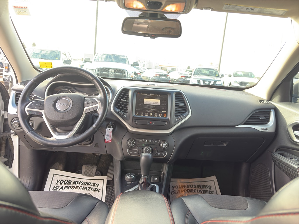 Protect this mid-size suv from unwanted accidents with a cutting edge backup camera system. You'll never again be lost in a crowded city or a country region with the navigation system on it. Never get into a cold vehicle again with the remote start feature on the vehicle. The vehicle features a hands-free Bluetooth phone system. The vehicle is pure luxury with a heated steering wheel. The leather seats in this vehicle are a must for buyers looking for comfort, durability, and style. This unit has four wheel drive capabilities. This 2016 Jeep Cherokee has a V6, 3.2L high output engine. This model embodies class and sophistication with its refined white exterior. Enjoy the tried and true gasoline engine in this model. Easily set your speed in this unit with a state of the art cruise control system. Increase or decrease velocity with the touch of a button. This 2016 Jeep Cherokee has an automatic transmission.