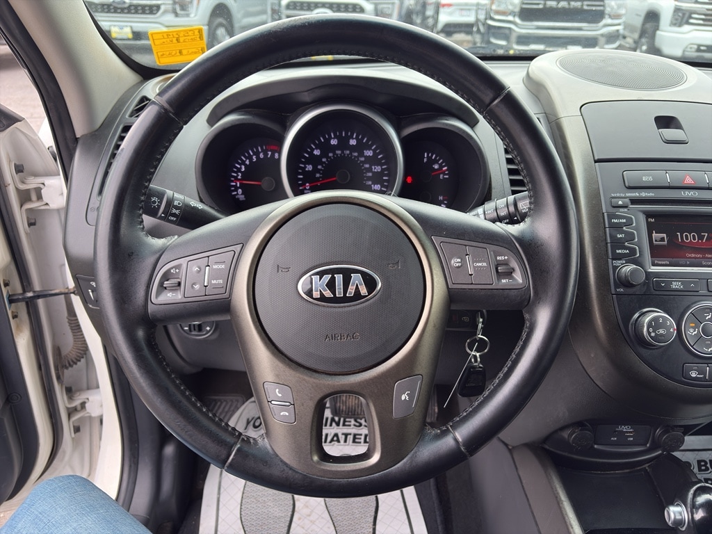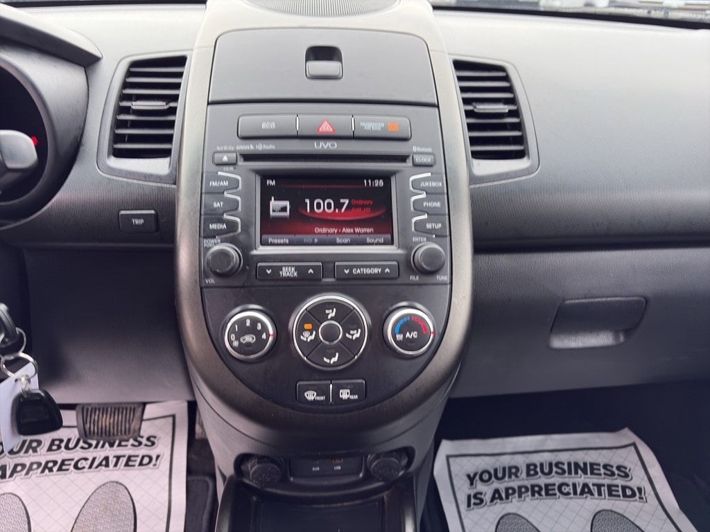 Never get into a cold vehicle again with the remote start feature on this Kia Soul. Protect this Kia Soul from unwanted accidents with a cutting edge backup camera system. Our dealership has already run the CARFAX report and it is clean. A clean CARFAX is a great asset for resale value in the future. Bluetooth technology is built into this unit, keeping your hands on the steering wheel and your focus on the road. Front wheel drive on this model gives you better traction and better fuel economy. Maintaining a stable interior temperature in this model is easy with the climate control system. The Kia Soul shines with clean polished lines coated with an elegant white finish. This unit has a 4 Cyl, 2.0L high output engine. The high efficiency automatic transmission shifts smoothly and allows you to relax while driving. This Kia Soul looks aggressive with a streamlined rear spoiler.