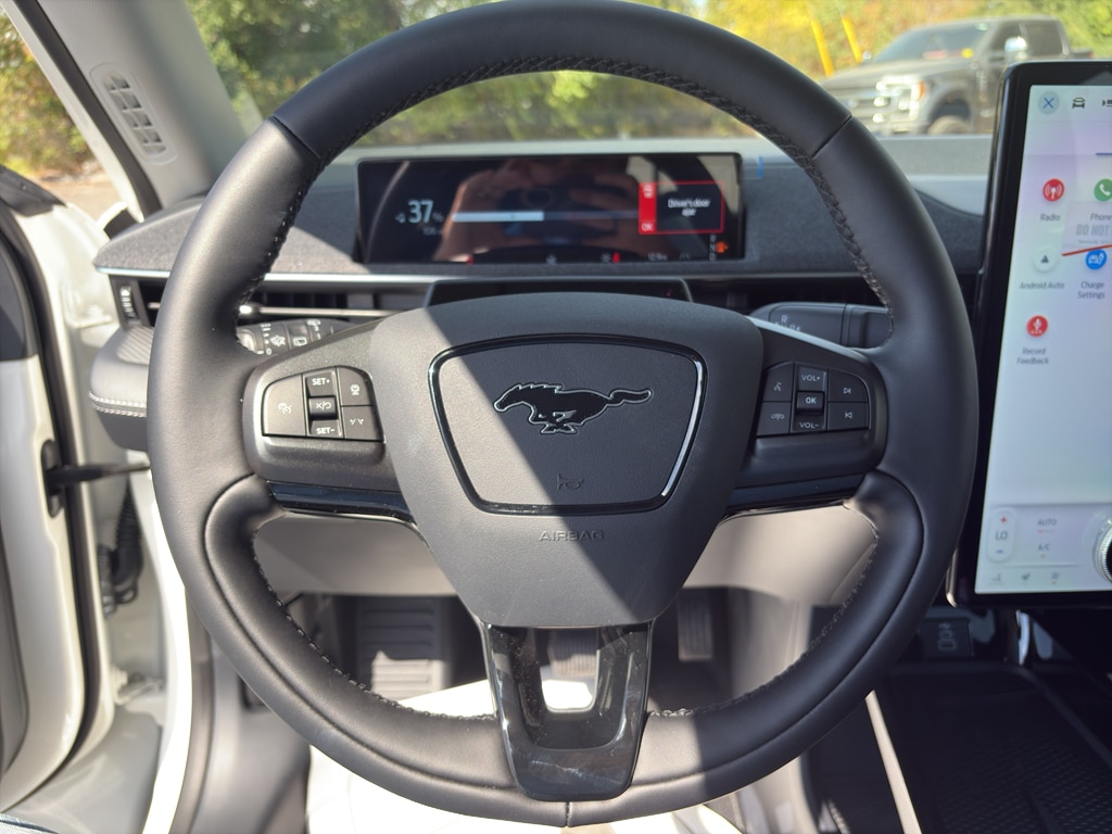 This vehicle offers Apple CarPlay for seamless connectivity. Keep your hands warm all winter with a heated steering wheel in the Ford Mustang Mach-E . See what's behind you with the back up camera on this model. It has automated speed control that adjusts to maintain a safe following distance, enhancing highway driving convenience. You'll never again be lost in a crowded city or a country region with the navigation system on it. This model features a hands-free Bluetooth phone system. The leather seats in this 2025 Ford Mustang Mach-E are a must for buyers looking for comfort, durability, and style. This 2025 Ford Mustang Mach-E offers Android Auto for seamless smartphone integration. Load groceries and much more with ease into this model thanks to the power liftgate. This Ford Mustang Mach-E shines with clean polished lines coated with an elegant white finish. The Ford Mustang Mach-E has a Electric Motor high output engine.
